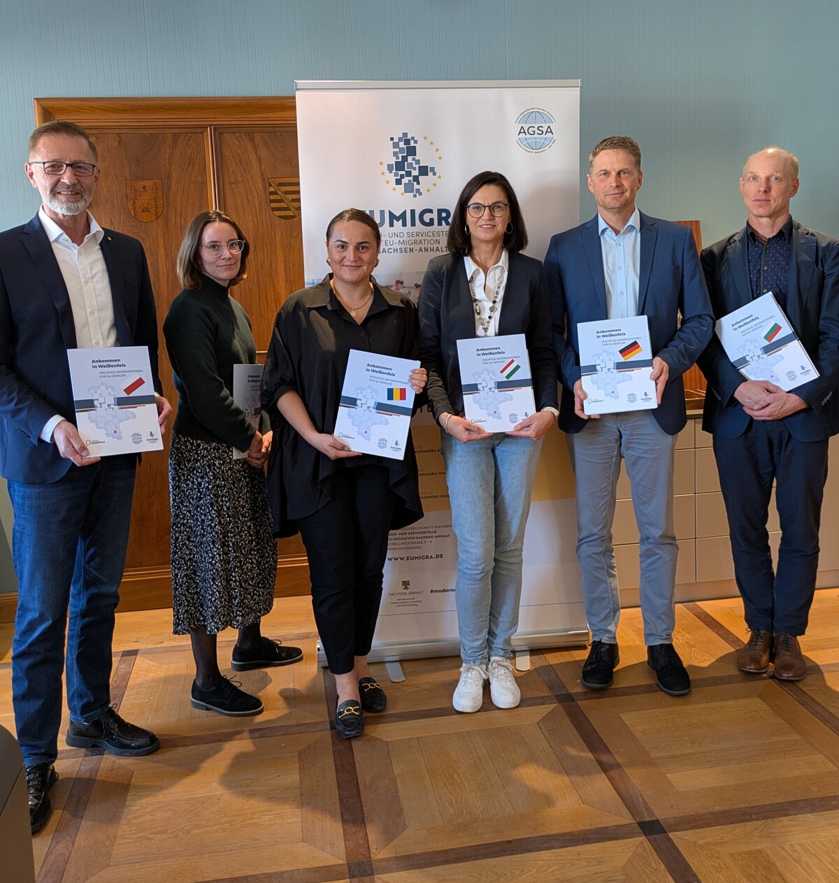 Das Informationsmaterial wurde gemeinsam vom AGSA- und Landesprojekt „Fach- und Servicestelle EU-Migration Sachsen-Anhalt“ und dem Team des Bürgerzentrums der Stadt Weißenfels erarbeitet. Ab sofort wird die Handreichung im Rahmen des Modellprojekts „Weißenfelser Weg“ bei den Ankunftsgesprächen ausgegeben. Die Digitalausgabe ist auf der Internetseite der Stadt Weißenfels verfügbar: https://www.weissenfels.de/Familie-Leben/Neu-in-Weißenfels/