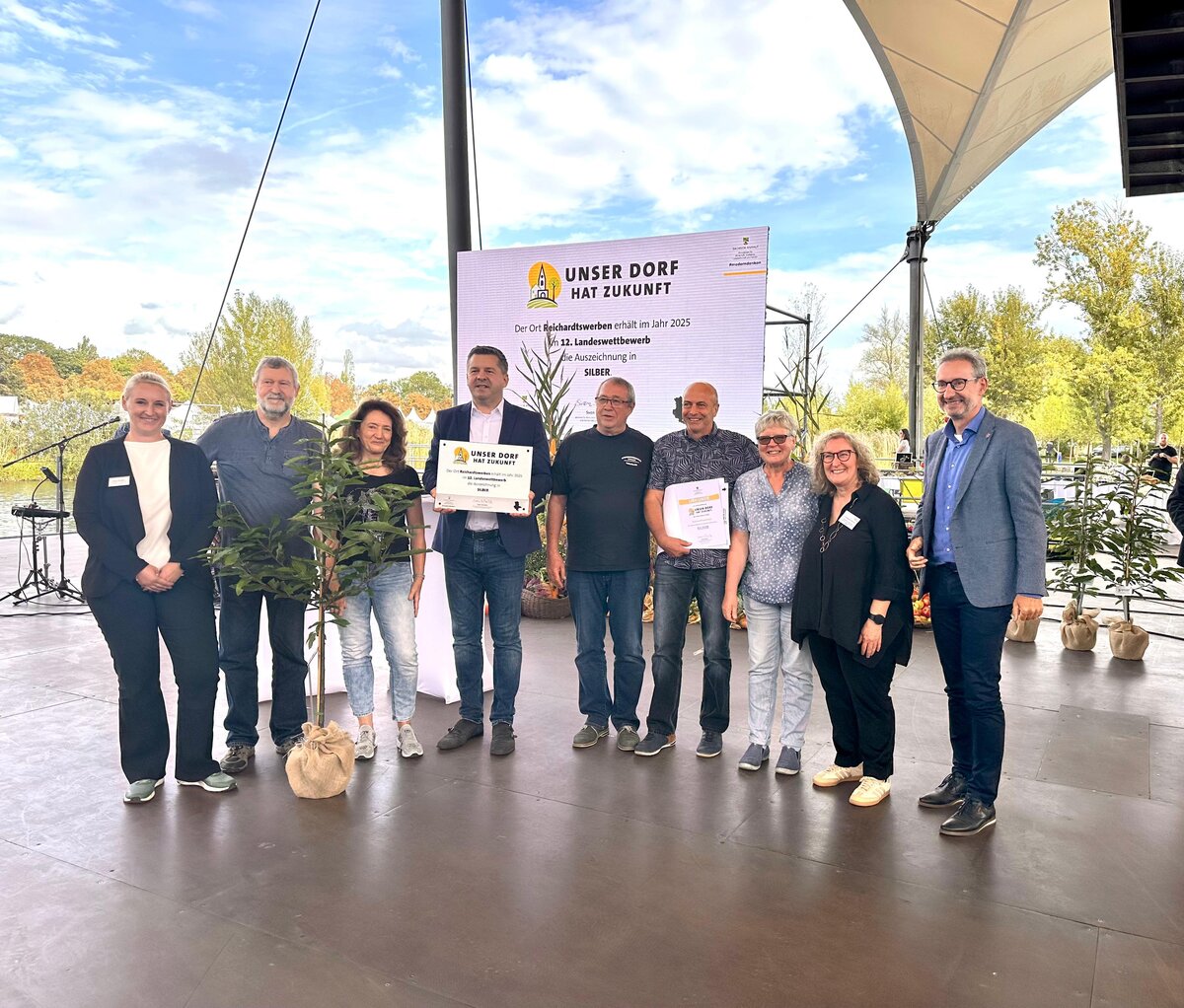 Die Weißenfelser Ortschaft Reichardtswerben wurde am 21. September 2025 beim Landeswettbewerb „Unser Dorf hat Zukunft“ mit Silber ausgezeichnet. Damit einher geht ein Preisgeld in Höhe von 2.000 Euro. Ortsbürgermeister Karsten Uhle nahm die Auszeichnung im Rahmen des Landeserntedankfestes im Elbauenpark in Magdeburg von Landwirtschaftsminister Sven Schulze entgegen. Zusammen mit zahlreichen Dorfbewohnerinnen und -bewohnern sowie der Ehrenamtskoordinatorin der Stadt Weißenfels Susann Worrack war er in die Landeshauptstadt gereist. Von der Veranstaltung brachte die Delegation zudem eine Esskastanie mit, die nun in Reichardtswerben eingepflanzt werden soll. Über die Verwendung des Preisgeldes wird der Ortschaftsrat entscheiden.