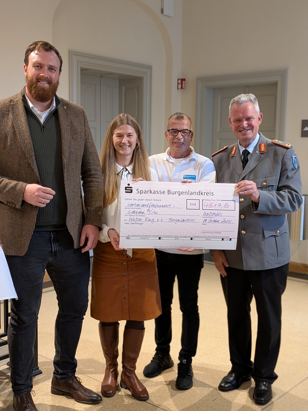 Der Weißenfelser „Lauf gegen Gewalt“ fand in diesem Jahr unter dem Motto „häusliche Gewalt“ statt. Mehr als 9.000 Euro wurden bei der Benefizveranstaltung eingenommen. Das Geld überreichten Oberbürgermeister Martin Papke und der Kommandeur des Kommandos Sanitätsdienstliche Einsatzunterstützung Generalarzt Dr. Bruno Most am 8. Oktober 2025 als Spende an den Frauenhausverein e.V. Weißenfels und die Opferberatungsstelle „Weißer Ring“.