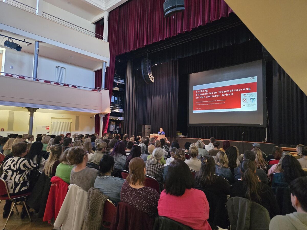 „Die erst vor wenigen Tagen durch das Bundeskriminalamt veröffentlichte Kriminalstatistik zeigt, warum unser Fachtag zur sexualisierten Gewalt notwendig ist: Mehr als 130.000 Sexualdelikte wurden im Jahr 2025 erfasst. Das sind mehr als 350 Fälle pro Tag. Und das Dunkelfeld ist noch viel größer, denn bei häuslicher Gewalt werden 19 von 20 Fällen nicht angezeigt und tauchen somit in diesen Statistiken gar nicht auf“, sagte Katja Henze. Mitarbeiterinnen und Mitarbeiter in der Sozialen Arbeit und anderen Berufsfeldern des Beratungs- und Hilfesystems begegnen diesen Betroffenen – und das oft früher, als es jede Statistik abbilden kann und vor allem nicht immer eindeutig erkennbar. Denn Traumatisierungen wirken zwar ein Leben lang auf eine Person ein, viele Betroffene ahnen davon aber nichts, weil sie Strategien entwickelt haben, um im Alltag zu funktionieren, ohne über das Erlebte sprechen zu müssen – eine belastende Situation, die sich in destruktivem Verhalten in Beziehungen und auf Arbeit, in Selbstschädigung, emotionaler Taubheit oder Überreaktionen äußern kann. „Das ist nicht nur für die Betroffenen selbst herausfordernd, sondern auch für die Fachkräfte, die mit diesen Reaktionen umgehen müssen und eventuell an Grenzen kommen. Genau hier setzte der Fachtag an. Er beleuchtete die Besonderheiten sexualisierter Traumatisierung und deren Bedeutung für die professionelle Praxis. Ziel war es, Fachkräfte in ihrer Handlungssicherheit zu stärken und Impulse für eine traumasensible Arbeit zu geben“, sagte Katja Henze. Dabei wurden die Teilnehmenden auch ermutigt, auf ihre eigene seelische Gesundheit zu achten. Denn wer andere unterstützt, braucht ebenso die Fähigkeit, sich selbst zu schützen.
