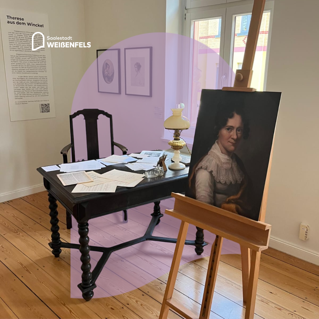 Die Ausstellung „Dem eigenen Kompass folgen“ widmet sich den Lebensgeschichten von zehn Künstlerinnen. Inspirationsquelle für die Schau ist Therese aus dem Winkel, die im Jahr 1779 in Weißenfels geboren wurde. Heute ist sie so gut wie unbekannt, obwohl sie zu Lebzeiten erfolgreich als Malerin, Musikerin und Schriftstellerin arbeitete. Aus ihrem recht umfangreich überlieferten Briefverkehr wird deutlich, was Künstlerinnen damals und heute eint: Die Entscheidung, ihren künstlerischen Überzeugungen treu zu bleiben, auch wenn gesellschaftliche, politische oder persönliche Umstände ihnen Steine in den Weg legen. Die Ausstellung „Dem eigenen Kompass folgen“ spannt den Bogen zwischen Vergangenheit und Gegenwart.