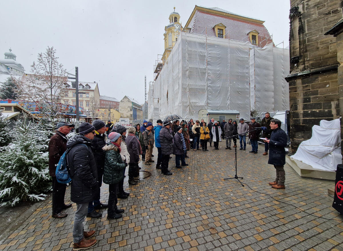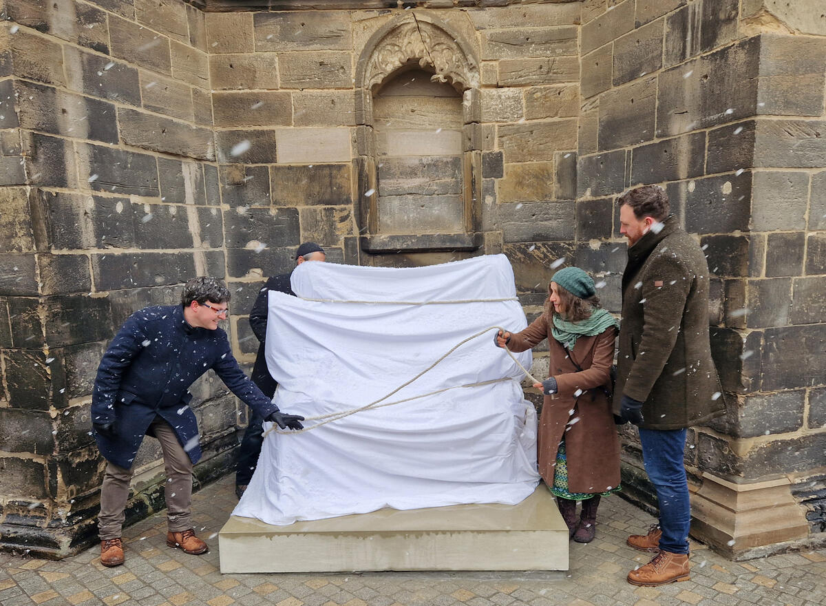 Die Stadt Weißenfels hat ein neues Wahrzeichen. Oberbürgermeister Martin Papke hat am 10. Dezember 2022 die Schütz-Novalis-Stadtbank an der Marienkirche enthüllt. Mit der feierlichen Präsentation geht das Festjahr „Schütz Novalis 2022“ zu Ende, welches die Saalestadt anlässlich des Doppeljubiläums zum 250. Geburtstag des Dichters Novalis und zum 350. Todestag des Komponisten Heinrich Schütz ausgerichtet hatte.