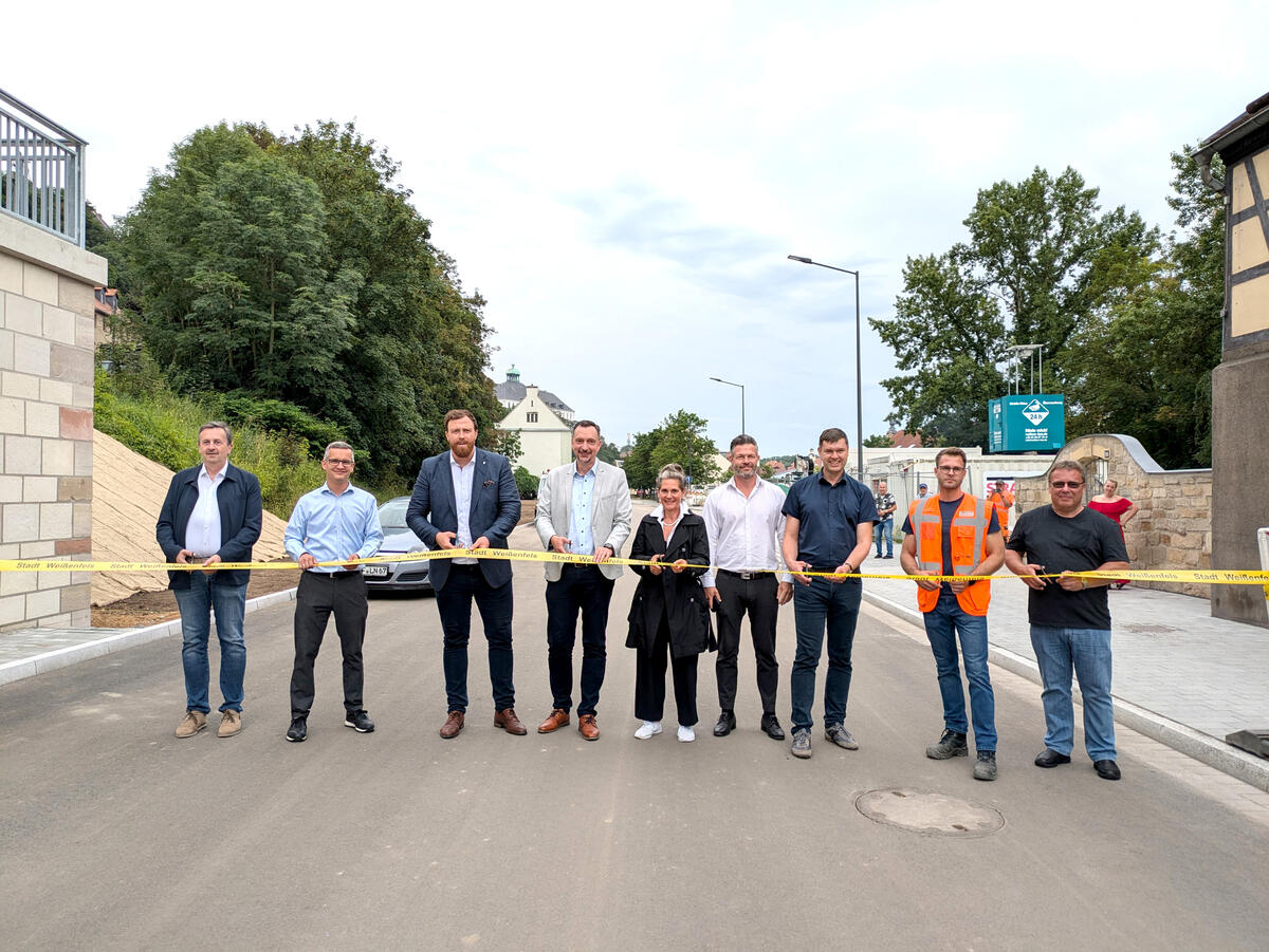 Der Ausbau der Leipziger Straße erfolgte als Gemeinschaftsmaßnahme mit der Abwasserbeseitigung Weißenfels AöR, welche neue Mischwasser- und Regenwasserkanäle hergestellt hat. Im Anschluss an die Kanalbauarbeiten wurde der 510 Meter lange Straßenabschnitt im Auftrag der Stadt Weißenfels asphaltiert. Die Gehwege wurden gepflastert und erhielten barrierefreie Querungsstellen. Stadteinwärts wurde bis zum Parkplatz Töpferdamm ein kombinierter Geh- und Radweg angelegt. Von dort aus können Fahrradfahrer auf der Leipziger Straße (30er-Zone) zum Markt weiterfahren oder auf den Radweg an der Saale wechseln. Stadtauswärts finden in den kommenden Wochen noch Markierungsarbeiten für einen Fahrradstreifen statt. Dies ist möglich, weil die Leipziger Straße in diesem Abschnitt nach der Sanierung eine Breite von 6 bis 6,5 Metern aufweist. Auf Höhe des Parkplatzes Töpferdamm wurden zwei barrierefreie Bushaltestellen errichtet. Außerdem konnte der Zugang zum Weg An den Stufen dank einer Mittelinsel und einem Blinden-Leitsystem ebenfalls barrierefrei gestaltet werden. Auch die neue Straßenbeleuchtung mit LED-Lampen ist fertiggestellt.