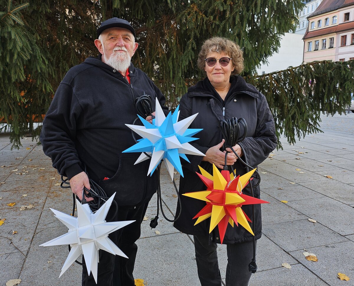 „Das Projekt ist einmalig in Deutschland“, sagt Jochen Schuba. „Wir mussten uns extra von der Herrnhuter Stern GmbH eine Genehmigung einholen.“ Derzeit suchen noch einige der insgesamt 28 Sterne ihre Paten. Für einmalig 80 Euro zieren sie dann als persönliches Licht jedes Jahr den städtischen Weihnachtsbaum. Und zwar so lange, bis sie defekt sind und nicht mehr aufgehängt werden können. Wer Weißenfels mit zum Strahlen bringen und eine Patenschaft übernehmen möchte, kann sich bei Roland Kähler (Telefon 0163 3702650) oder Elke Simon-Kuch (Telefon 03443 4739902) melden.