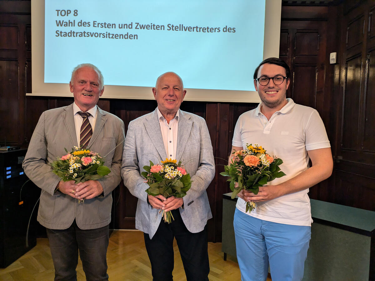 Bei der anschließenden Wahl des Stadtratsvorsitzenden setzte sich Ekkart Günther durch. Im Rahmen der geheimen Wahl erhielt er 23 Stimmen und konnte sich somit gegen seinen Konkurrenten Johannes Drewitz durchsetzen. Zum ersten stellvertretenden Stadtratsvorsitzenden wurde einstimmig Johannes Drewitz gewählt. Zweiter Stadtratsvorsitzender ist nach mehrheitlicher Wahl Maximilian Gludau.