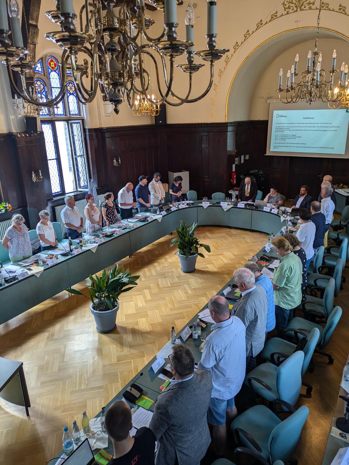 Der neue Weißenfelser Stadtrat kam am 11. Juli 2024 zu seiner ersten Sitzung im Ratssaal am Kloster zusammen. Insgesamt 32 Stadträte waren bei der konstituierenden Sitzung anwesend, in deren Rahmen die Arbeitsfähigkeit des Stadtrates hergestellt wurde.