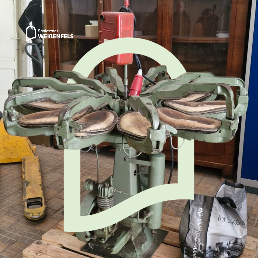 Am 7. April 2025 konnte das Museum Weißenfels ein ganz besonderes Exponat begrüßen: Eine Ringklebepresse in Karussellform, die der Kostümwerkstatt der Oper Leipzig entstammt. Die Maschine wurde 1957 gebaut und war beeindruckende 65 Jahre – von 1958 bis 2023 – im täglichen Einsatz.