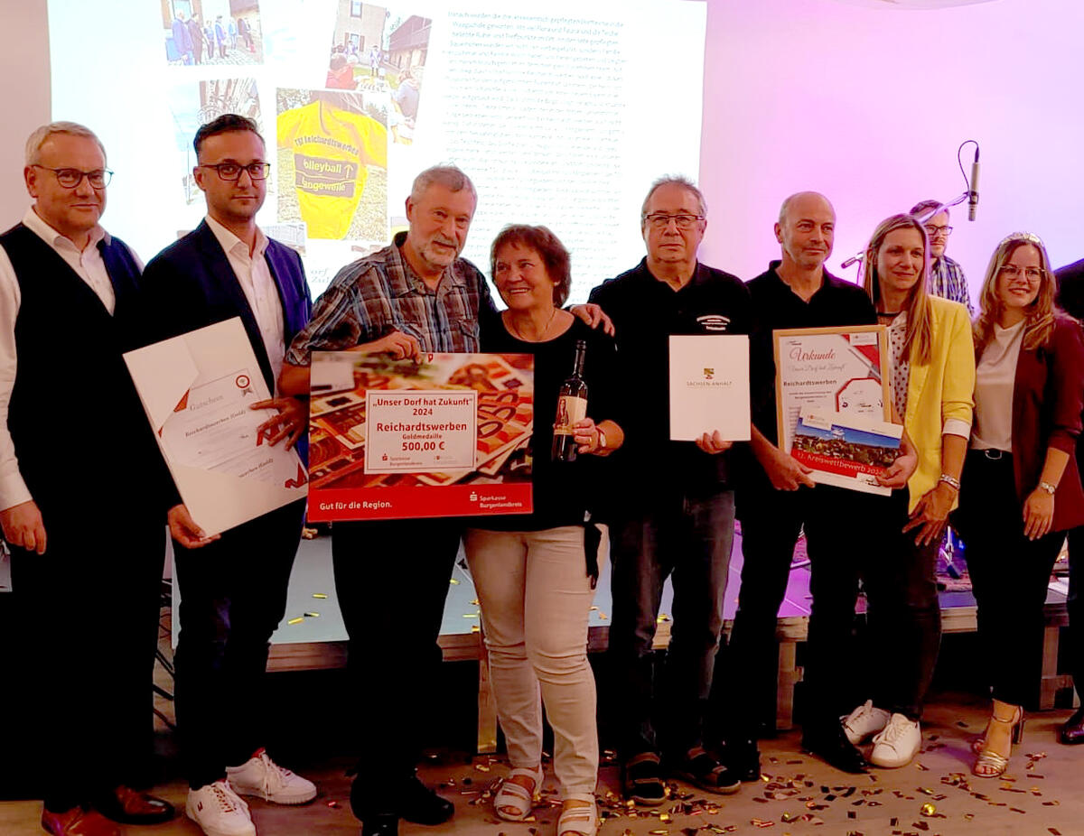 Die Weißenfelser Ortschaft Reichardtswerben hat den 12. Kreiswettbewerb „Unser Dorf hat Zukunft“ gewonnen. Zweiter Sieger ist der Ort Spora. Insgesamt hatten 18 Dörfer an dem diesjährigen Wettbewerb teilgenommen. Im Rahmen der Abschlussveranstaltung am 25. September 2024 im Volkshaus Taucha überreichten Landrat Götz Ulrich und Gert Zender, Staatssekretär im Ministerium für Wirtschaft, Tourismus, Landwirtschaft und Forsten des Landes Sachsen-Anhalt, den Vertretern der Siegerdörfer ihre Auszeichnung. Die mit Gold ausgezeichneten Orte werden nun den Burgenlandkreis beim Landesausscheid vertreten.