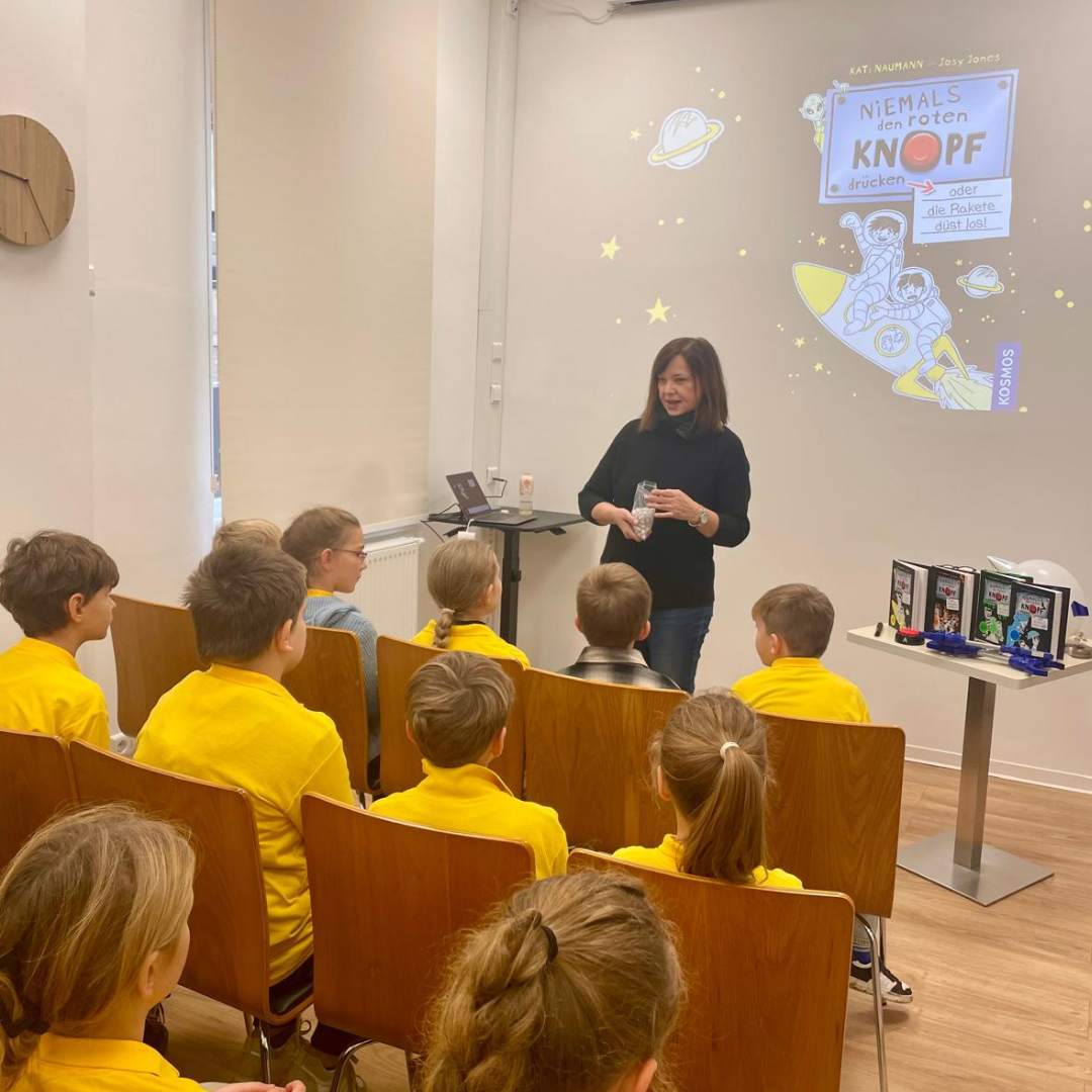 Ein besonderes Highlight des Tages war der Besuch der Autorin Kati Naumann in der Stadtbibliothek Weißenfels. Die vielseitige Autorin, bekannt aus der Hörspielreihe „Monika Häuschen“ und zahlreichen Romanen, stellte ihr humorvolles Kinderbuch „Niemals den roten Knopf drücken“ vor. Die Lesung begeisterte Dritt- und Viertklässler der Grundschule Langendorf und entführte sie in die Welt des Lesens. Im Anschluss wurden die jungen Zuhörerinnen und Zuhörer mit Bibliotheksbeuteln voller Überraschungen beschenkt – ein Andenken an einen unvergesslichen Vormittag und ein Anreiz, selbst aktiv zu lesen.