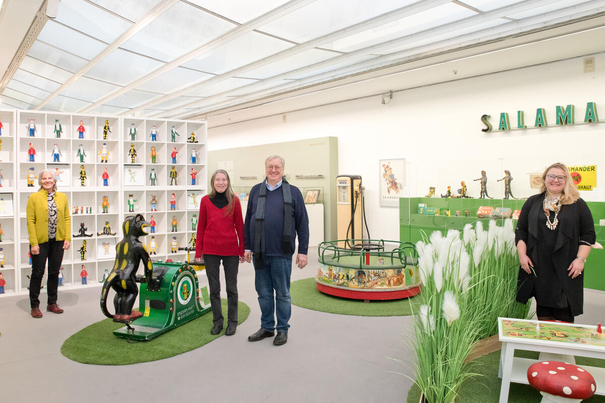 Bei einer gemeinsamen Führung mit Oberbürgermeisterin Ursula Keck und Museumsleiterin Saskia Dams wurde den Besuchern aus Weißenfels die Ausstellung „Helden des Südwestens" gezeigt. Aus ostdeutscher Sicht hat diese einen besonderen Charme: „Viele der Helden-Geschichten aus dem Südwesten sind uns leider nicht bekannt, beziehungsweise es gab bei uns einfach andere Produkte, die den gleichen Zweck erfüllten. Porsche aber war für uns alle ein Traum. Jeder von uns Burschen träumte davon, einmal einen Porsche zu fahren. Auch von Marken wie Weck oder Maggi wurde generationenübergreifend gerne gesprochen, auch dann, wenn eigentlich ein ganz anderer Name auf der Verpackung stand", sagte Jörg Freiwald.