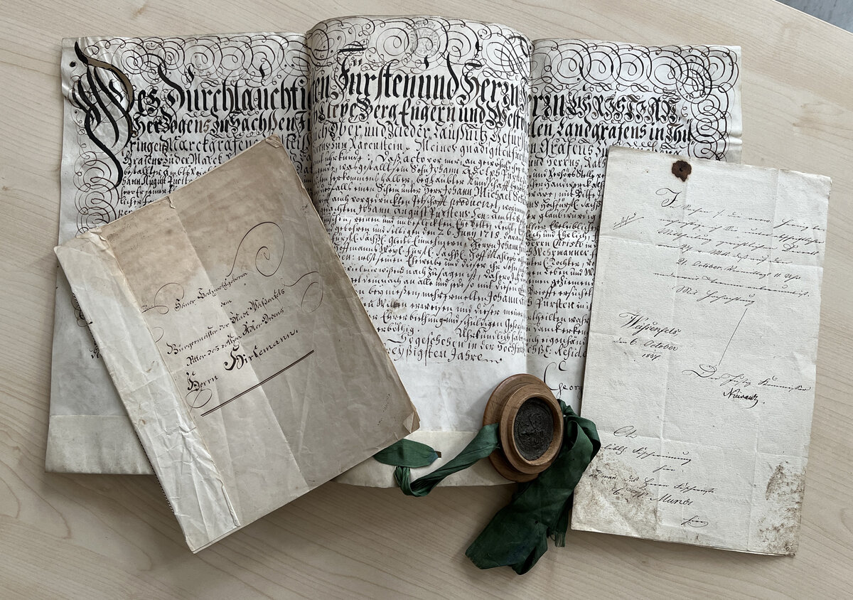 Zu den übergebenen Schriftstücken zählen unter anderem ein Lobschreiben an Bürgermeister Hirsemann aus dem Jahr 1859, das anlässlich der Hochzeit seiner erstgeborenen Tochter verfasst wurde. Besonders bemerkenswert ist die abschließende Auflistung aller Weißenfelser Innungen in diesem Schreiben. Ein weiteres Dokument stammt aus dem Jahr 1837: Darin wendet sich der Justizkommissar Niewandt an den damaligen Fischermeister Mundt mit Informationen zur Neuanberaumung einer Gerichtsverhandlung. Das älteste Schriftstück ist eine beglaubigte Urkunde mit Siegel aus dem Jahr 1734. In ihr bestätigt der Amtsvoigt von Weißenfels die sogenannte „Kundschaft“ des Johann Adolph Pürste, der das Fischerhandwerk erlernt hatte. Eine solche Kundschaft war erforderlich, wenn ein Handwerker in eine andere Stadt ziehen oder einer Innung beitreten wollte – in diesem Fall beantragte Pürste die Aufnahme in die hiesige Fischerinnung unter der Regentschaft von Herzog Christian (1682-1736). Mittlerweile sind die Dokumente dem Stadtarchiv übergeben worden.