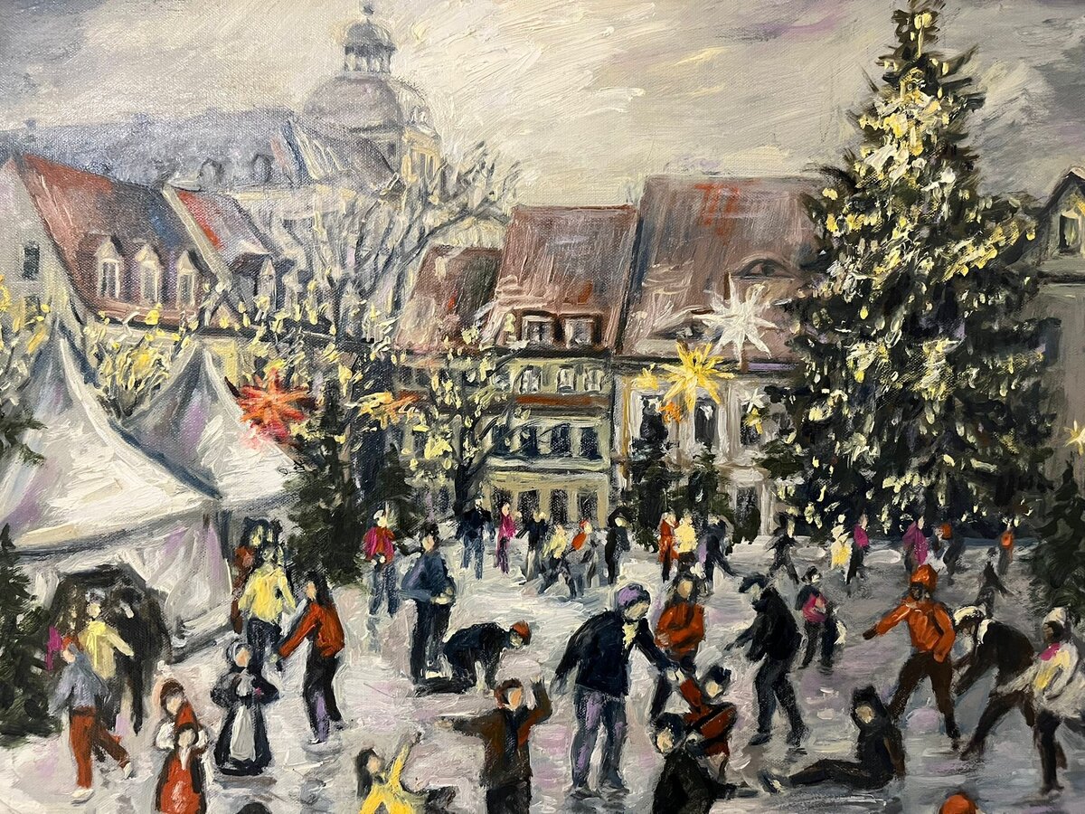 Wieso stellen wir zu Weihnachten einen reich geschmückten Baum ins Wohnzimmer und backen in der Adventszeit Lebkuchenmänner? Antworten zu diesen und anderen Fragen gibt die neue Ausstellung „Typisch Weihnachten?!“ im Foyer des Weißenfelser Rathauses. Bis zum 9. Januar 2026 können große und kleine Besucher hier anhand historischer Objekte die Herkunft weihnachtlicher Bräuche erkunden. Das vom Museum kürzlich erworbene Gemälde „Weißenfelser Weihnachtsmarkt“ des Künstlers Jürgen Lorenz ist zentraler Bestandteil der Ausstellung und vermittelt gekonnt eine winterlich-weihnachtliche Impression der Saalestadt. Die Präsentation kann kostenfrei zu den Öffnungszeiten des Rathauses besichtigt werden.