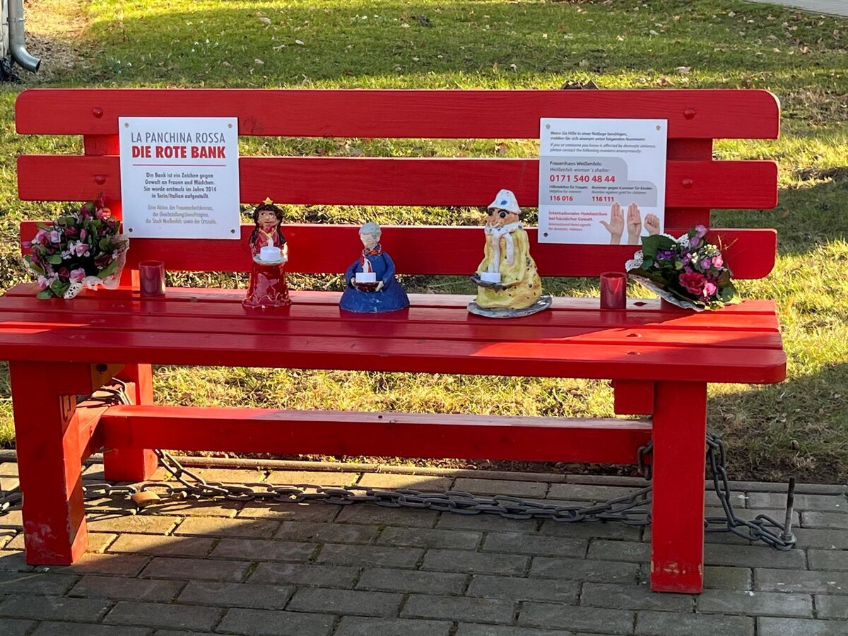 Weißenfels war im November 2021 die erste Stadt in Sachsen-Anhalt, in der eine Rote Bank aufgestellt wurde. Mit den symbolträchtigen Bänken auf dem Marktplatz und in den Ortschaften beteiligt sich die Saalestadt an der weltweiten Initiative „La Panchina Rossa“, die im Jahr 2014 in Italien ihren Anfang nahm. Mit der Roten Bank wird ein Zeichen gesetzt: Kein Platz für Gewalt an Mädchen und Frauen.
