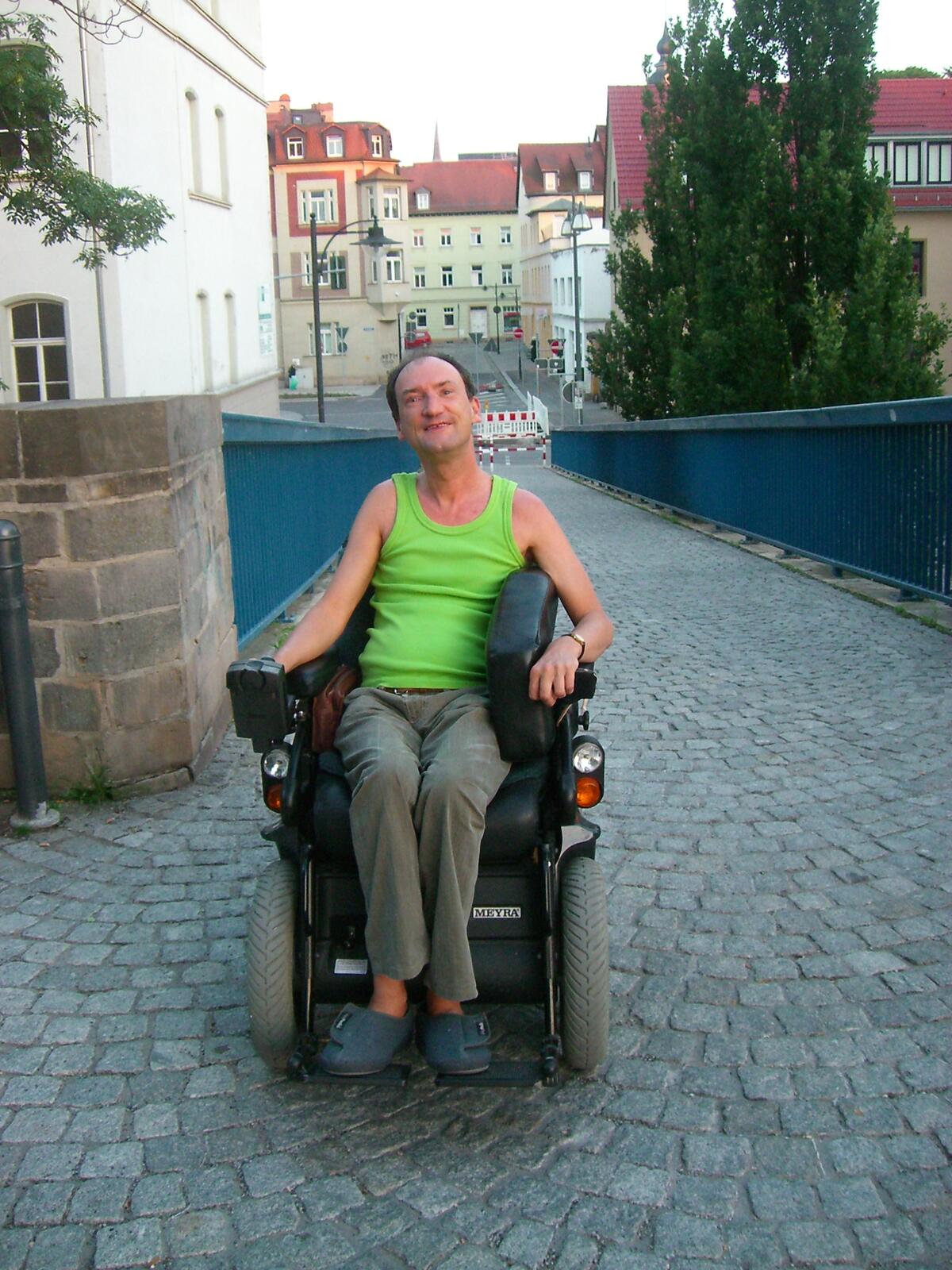 Ich bin Spastiker, körper- und sprachbehindert und nutze vorrangig den Elektrorollstuhl. Bin 60 Jahre jung, Mitbegründer der kirchlichen Roller Latscher Gruppe 1982 und Gründungsmitglied des Behindertenverbandes Weißenfels e.V.1990 und gehörte von Anbeginn dem Behinderten- und Seniorenbeirat des Landkreises Weißenfels an und dann dem Behindertenbeirat des Burgenlandkreises bis zur Gründung des Behindertenbeirates der Stadt Weißenfels