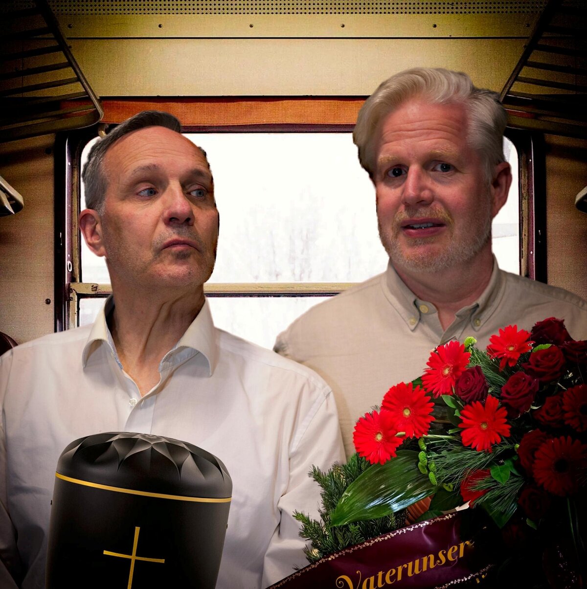 Mit skurrilem Humor werden während der Show wichtige Fragen des Lebens erörtert – auch wenn es eigentlich um den Tod geht und um einen letzten Willen, der alles sprengt: Die Asche muss an den FKK-Strand! Zwei Männer, wie sie unterschiedlicher nicht sein könnten, sitzen deswegen fest: im Zug, im Leben, im Testament. Die getrennt voneinander aufgewachsenen Brüder lernen sich erst durch den letzten Willen des Vaters kennen. Und nun soll zusammenkommen, was zusammengehört. Was kann da schon schiefgehen – außer alles? Beide haben nichts gemeinsam, abgesehen von einem toten Vater, einer Urne und einem Auftrag. Einzig die Aussicht aufs Erbe scheint sie zu verbinden. Ein kabarettistischer Roadtrip zum Meer, ein Bahnabenteuer voller Kulturschocks, Voyeurismus, Umleitungen und überraschenden Verbindungen.